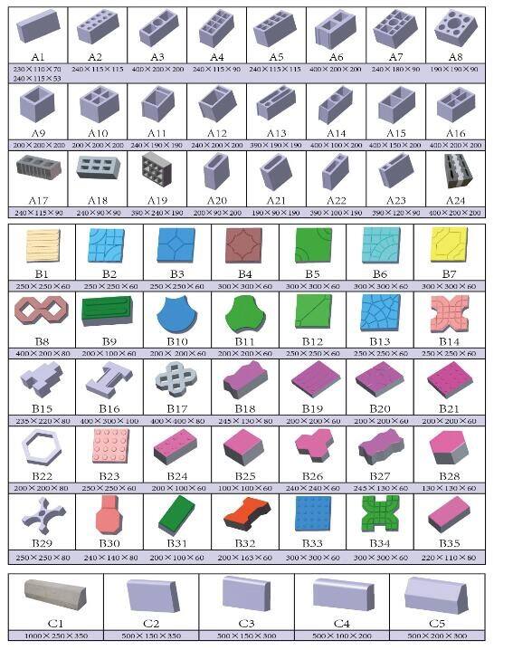 בלוקים בטון, אבני הרסלה, גדרות, וכו', ניתן לייצר בגדלים וצורות שונות על ידי החלפת התבניות.